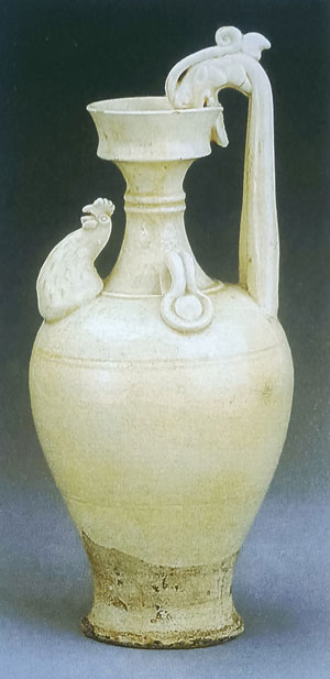 A white-glazed chicken-headed jug excavated from the tomb of Li Jingxun